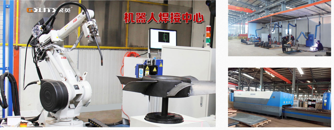 聚英生產中心配備了大量國外先進的裝備工藝,如 ABB機器人焊接中心、大族數控激光切割機、機器人蝸殼焊接機、全自動框架生產線等一 流專 業制造設備,此外,聚英擁有獨立的技術研究測試中心和設備焊接中心,使生產效率、產品外觀、運行質量、參數性能得到強有力的保障和提升。